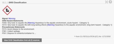 H410: Very toxic to aquatic life with long lasting effects [Warning Hazardous to the aquatic environment, long-term hazard – Category 1]