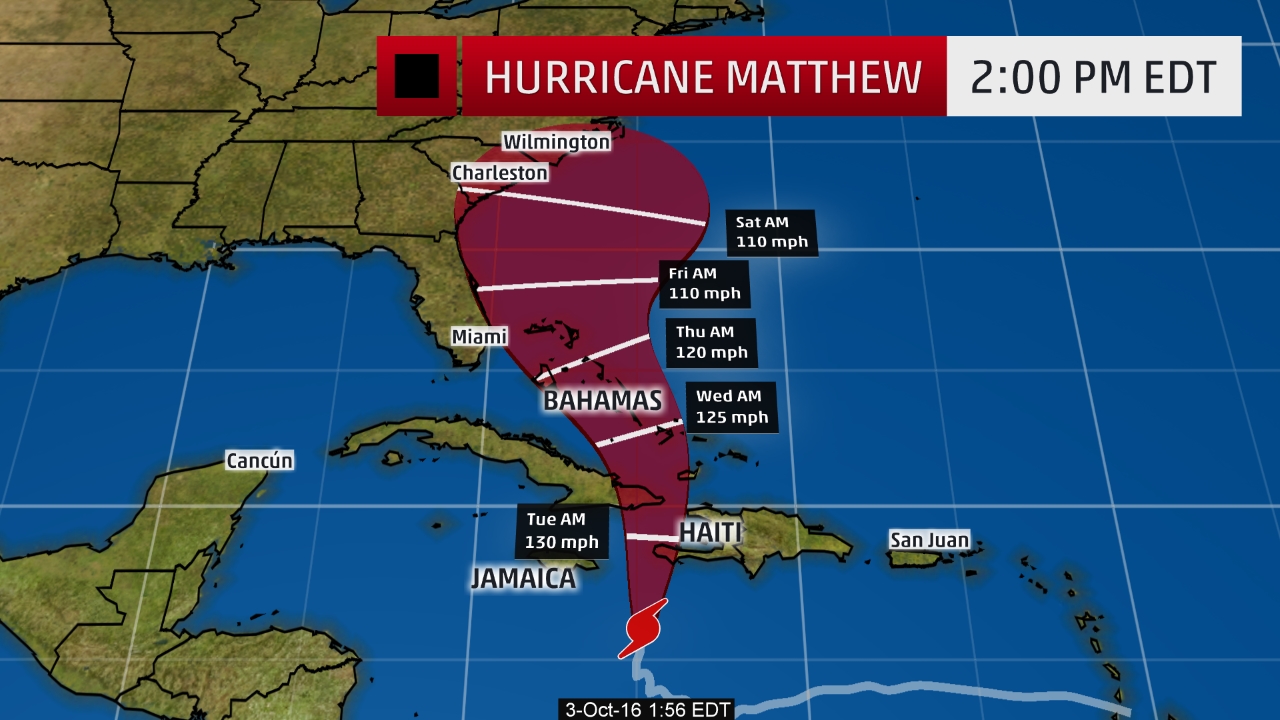 1) Hurricane Mathew will devastate huge parts of the Caribbean as 100 MPH Gusts now tear thorough Northern Columbia as the storms moves a 7MPH north towards Florida.