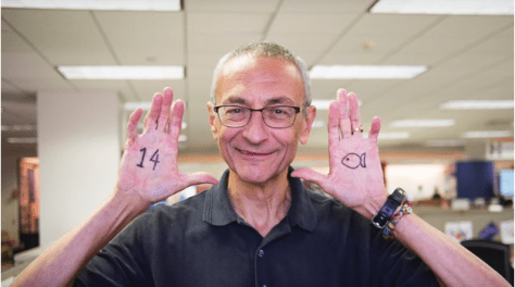 Hillary Clinton campaign chairman John Podesta holding up hands containing occult symbols. Click HERE to know more.