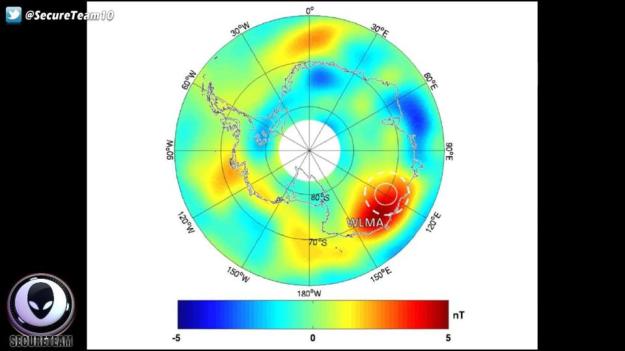 Massive gravitational energy (red) emanating from awakening “Vimana” under Antarctica
