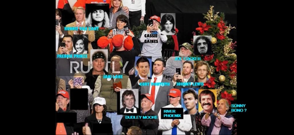 Look up the Trump rally in Biloxi, Mississippi where all the dead movie stars are at the rally incognito of course. You will be amazed at the number people are supposed to be dead but are very much alive. Enjoy!!