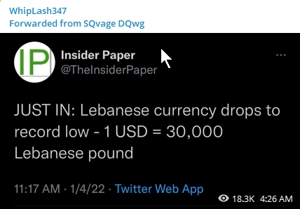 Intel LEBANESE POUND DROPS.. Jan 5, 2022 Brian Robert Hyland Leave a comment Share this: Share on Telegram (Opens in new window) Telegram Share on Facebook (Opens in new window) Facebook Share on X (Opens in new window) X Share on Tumblr (Opens in new window) Tumblr More Share on WhatsApp (Opens in new window) WhatsApp Share on LinkedIn (Opens in new window) LinkedIn Share on Reddit (Opens in new window) Reddit Like Loading... Related