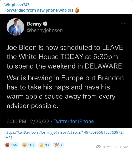 Intel BIDEN HAS GONE NAPPING.. Feb 26, 2022 Brian Robert Hyland Leave a comment Share this: Share on Telegram (Opens in new window) Telegram Share on Facebook (Opens in new window) Facebook Share on X (Opens in new window) X Share on Tumblr (Opens in new window) Tumblr More Share on WhatsApp (Opens in new window) WhatsApp Share on LinkedIn (Opens in new window) LinkedIn Share on Reddit (Opens in new window) Reddit Like Loading...