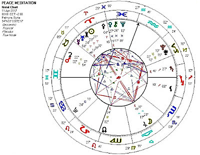 Astrological chart for our meditation shows a cardinal grand square of Sun/Uranus/Eris, Vesta, Jupiter/Moon and Pluto/Juno which signifies the peak point of planetary tension before its gets finally resolved as a result of the intervention of the Light forces: