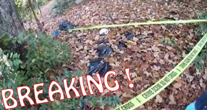 The site was discovered after a local hiker saw a skull that an animal had most likely dug up and left on top of the grave. The surface was also scratched away, revealing some of the green Hefty bags.